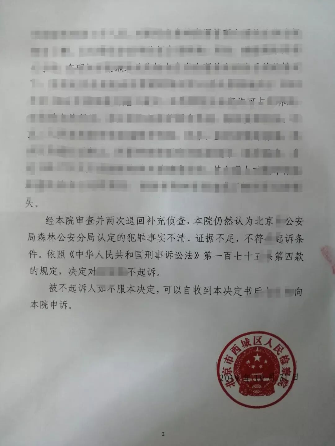 本案历时一年半时间,经历了两次退回补充侦查。最终检察机关采纳了我的辩护意见,2019年10月31日,检察院对被告人赵某某作出不起诉决定。