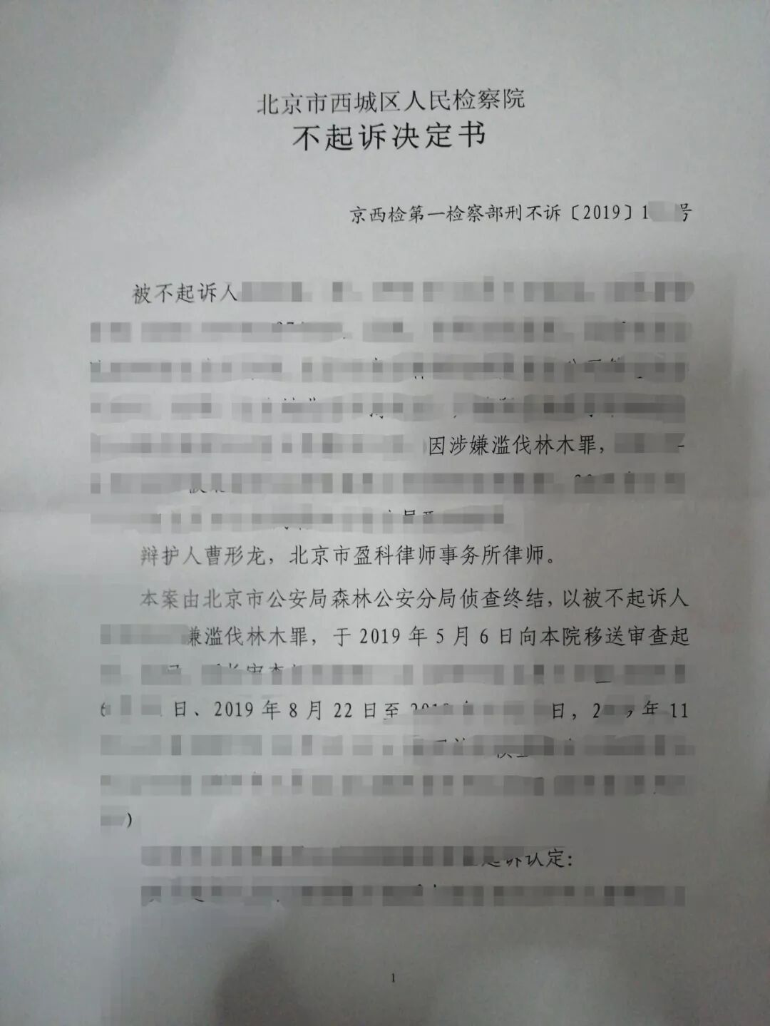 检察院不起诉,律师辩护成功!
