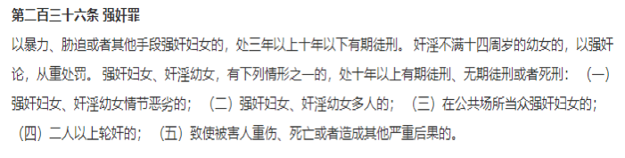 为什么第二百三十六条中明确规定与十四岁以下的幼女发生性关系,即使是出于自愿也属于强奸罪呢?因为我们普遍认为,十四岁以下的女性是没有性同意能力的,只有通过限制其自由才可以保护其应有的权力。