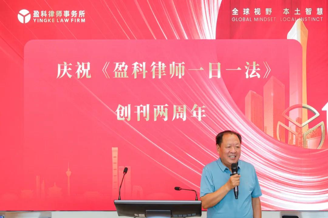 紧接着,参加本次活动的盈科全球总部合伙人、中国区董事会董事、《盈科律师一日一法》副主编车行义,盈科北京并购重组与企业破产法律事务部主任、教育培训委员会主任李燃,总编辑韩雄亮、大校崔建东、副局长韩洪洪、蒋笃奎、刘维嘉、市场总监张圣炜相继致辞讲话,分享他们对《盈科律师一日一法》创刊两周年的体悟,并表示热烈祝贺,认为它对于宣传法律知识、弘扬盈科文化有着积极的意义。